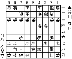 | 第24局 | 森安秀光 | ▲4五歩超早仕掛け | 1982.08.20 | 十段戦 | 谷川の研究手。△7二銀を先にする美濃囲いに対し、8二に打ち込みの隙があるということで、船囲い基本形からいきなり▲4六歩〜▲4五歩と仕掛けていく。定跡書ではあまり見かけない仕掛け。〔右図〕で△3三角なら▲4五歩△同歩▲3三角成△同銀▲8二角が狙い。本譜の△7一玉なら、2二角が浮いているのでやはり▲4五歩と仕掛ける。 |