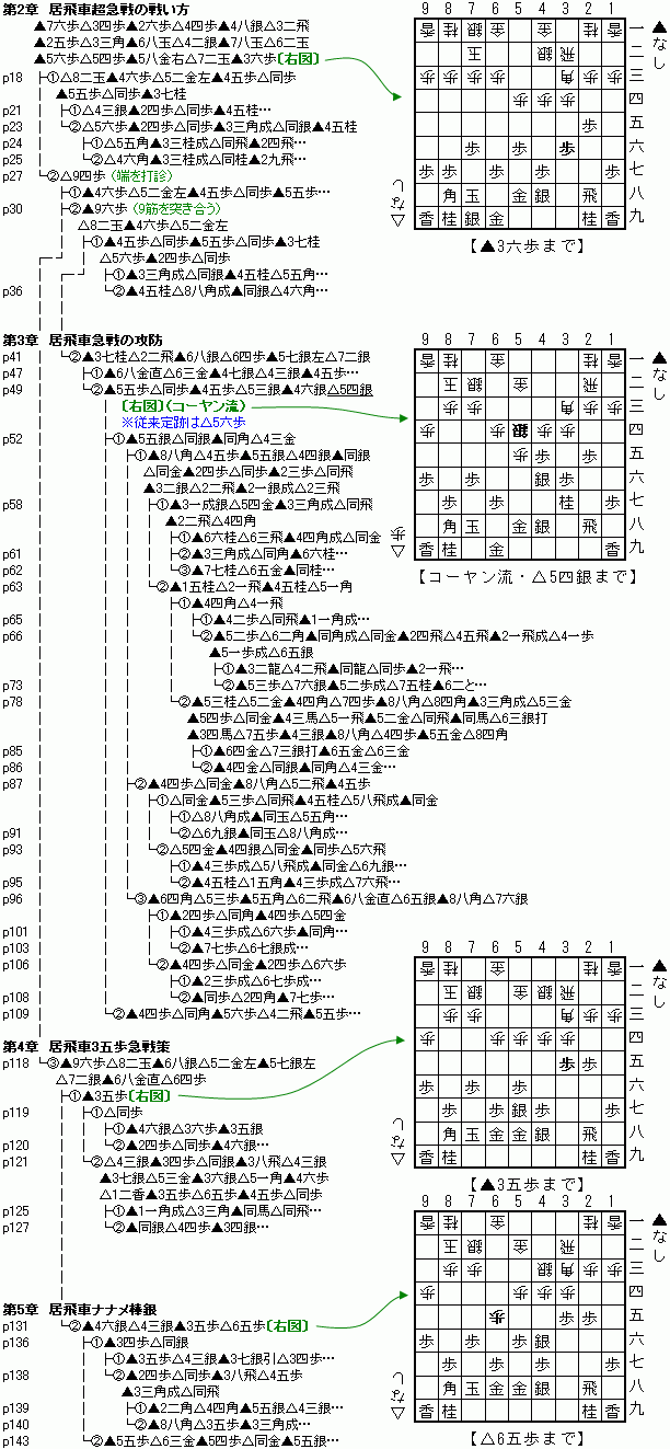 | 【レビュー】 復刻モノを除くと、ほんと〜〜〜うに久々に出た本格派の三間飛車定跡書。 後手三間飛車は急戦に弱いというのが定説だった。また、居飛車穴熊や左美濃に対しては四間飛車藤井システムのような急戦策がなく、そのため三間飛車党はずっと少数派だった。そんな中でずっと三間飛車にこだわった中田功がついに日の目を浴びた感じである。『後手番で急戦を受けきるコーヤン流の三間飛車』が本書のキャッチコピーだ。 本書では全編とも、△三間飛車vs▲居飛車急戦である。不利といわれた△三間飛車で互角以上に戦えるのは、序盤戦術の進化によるものだ。たとえば、従来△8二玉と囲いを急ぐところで△9四歩と突く。ただし、▲玉頭位取りの可能性が残っているときは△8二玉を急ぐ、などなど。 全般的に分かりやすく、内容も伴っている。もっとも力が入っているのは第3章で、この章だけは終盤まで突っ込んで解説されている。▲3七桂戦法は、『羽生の頭脳3』を読んでもあまり頭に入らなかったのだが、本書を読んで感覚がつかめたように思う(単に経験値が溜まっただけだろうか?)。わたしが好きな▲左4六銀はページ数が少なく、一部の疑問が残ったままなのがちょっぴり不満。 第5章まで読んだときにはかなりの好評価をしていたのだが、実戦編が75pもあるのに3局しかないのが非常に残念で評価を少し下げた。実戦編を見ない人にはAでもいいと思う。(2003May19) 〔2012Jan06追記〕 みかんさんのご要望にお応えして、第2章〜第5章のチャートを作成してみました。ご活用ください。 ![]() |