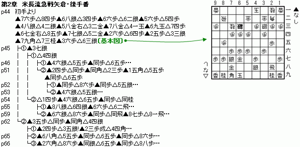 | 急戦矢倉の定跡書。 矢倉(特に後手番)で相手に追随していくと、▲4六銀-3七桂型や▲脇システムなどに収まることが多い。これらの戦型は、先手の研究が生きやすい形だ。後手としてはどこかで変化したいが、すでに数多くの類型で研究し尽くされ、自分の力を出すチャンスがない場面も多い。 それならばと、急戦に打って出るのも一つの選択だ。普通は後手からの仕掛けは無理になりやすいが、矢倉の場合は先手が角道を止めて穏便に指そうとしているので、後手からの急戦が通ることも多い。 本書は、矢倉での後手急戦(+▲米長流)を詳しく解説した本である。 載っている戦法は、(先後の米長流は一つとして)全部で4つ。後手の急戦は他にもあるが、一本調子の原始棒銀や右四間飛車はあえて外している。 各章の内容を、チャートを添えながら紹介していこう。 第1章は、先手番の米長流急戦矢倉。通常は後手番で使用される米長流を、先手番で使おうというもの。ただし、ノーマル矢倉戦では以下の条件が必要となる。 (1) 先手は5手目▲7七銀とする。(▲6六歩と止めない) (2) 後手が早めに△4四歩と角道を止める。 普通の矢倉戦ではこれらの条件はなかなか実現しにくいため、どちらかといえば、出だしが▲7六歩△3四歩▲2六歩△4四歩からウソ矢倉模様になったときに使えることが多いようだ。 米長流の攻撃法は、攻め方として非常に参考になる筋が多いので、指さない人もぜひ一読されたい。右四間飛車と違って、いろいろな筋で歩が使われるのが面白い。 ポイントとしては、後手の「飛先交換〜△9五角」(p26)の態勢が強力なので、先手は攻める前に▲9六歩(p31)が必要になる。対して後手は「7筋歩交換〜△8四角」(p39)で牽制してくるが、従来の本にはあまり載っていない攻め方(p39〜42)で先手良しとなる。 ![]() 第2章は、後手番の米長流急戦矢倉。元々はこちらがオリジナルだ。先手が5手目▲7七銀でも▲6六歩でも使えるのは大きな長所。1手の差がある分、先手番のときよりも攻め方が限定される部分があるが、後手番でも攻め方は第1章とあまり変わらない。 米長流は玉が薄いので、慣れないうちは反撃を食らって負けることが多く、即戦力にはなりにくい戦法だと思う。特に、流れるように手をつないでいくので、その場で考えていくのは短時間では難しい。ただし、経験値が貯まってくれば、常に自分だけ経験豊富な形に持ち込めるし、いろいろな手筋や押し引きを覚えられるので、マスターしたときにはかなり強力な武器になるだろう。 ![]() 第3章は、△5三銀右急戦。郷田流、阿久津流などとも呼ばれた形で、△5三銀右型から5筋の歩を角で交換する。早めに動くので急戦と呼ばれているが、攻め潰そうというわけではなく、小競り合いから作戦勝ちを狙うことが多い。2008年の竜王戦で渡辺明が2つの新手を出して以来、この5年でちょこちょこ指され、進化し続けている。 本章前半(p69〜)の、先手が総矢倉で受ける形は、アマなら結構ありそうだ。この場合は5筋交換にこだわると良くならない。雁木で作戦勝ちを狙う指し方は、ぜひマスターしておきたいところ。 後半(p89〜)は、プロでも実戦例の多い形。こちらはプロ観戦ガイドとしても使える。 個人的には非常に好きな作戦だ。先手が志向する▲4六銀-3七桂や脇システムなどを外すことができるし、5筋を交換しておけば何かと手は作れる。そして何よりも、毎回違う形になるので、経験を生かしつつも、その場でいろいろと考える楽しみがある。即戦力にはならないが、末永くお付き合いできる戦法といえるだろう。 ![]() 第4章は、田丸流△5三銀左戦法。単行本ではおそらく初登場だ。矢倉なのに(?)左銀が5三に来る。攻め方で米長流と似た部分があるが、2筋を受けず、角道がずっと通ったままなのが大きな違いだ。 攻めは、「△6五歩▲同歩△8六歩▲同歩△6五桂」の一種類と、とても覚えやすい。半面、2筋が薄くて必ず反撃が来るので、いなし方をマスターする必要がある。また、猛烈な攻め合いになることがあるので、強気な方にオススメだ。 本戦法は、仕掛けが早く、間口も比較的狭いので、即戦力としては効果大。また、米長流と違ってまだあまり知られておらず、ベテラン棋客にも大いに通用するポテンシャルがある。新しい戦法なので検討の余地もあり、右○間○車のように、相手にイヤな顔をされることも少なそうだ。 ![]() 第5章は、△矢倉中飛車。古くからある戦法だが、先手が矢倉中飛車を嫌って、5手目▲6六歩が主流になったので、指される機会が少なくなっている。裏を返せば、5手目▲7七銀には現在も有力な戦法である。 多くの変化で後手が勝ちやすいのだが、先手の正しい受け方も開発されており(p210〜)、なかなか一筋縄ではいかない。そこで本書では、先手が正しく受けてきても十分に戦える(であろう)指し方として、[及川の新研究]がp217から披露されている。まだ実戦例もほとんどなく、未開の地だが、いち早く取り入れて試してみるのも