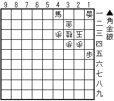 第53題 ヒント せまい玉であるが、玉の腹と尻は馬金角の守備がある。 頭から迫るよりない。要は飛車の使い方にある。(九手詰) 十級程度向き。 飛車がちょこちょこ動くのが面白い問題。 |