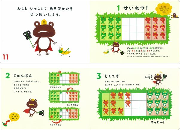 | ◆内容紹介 親子で遊ぶかえる将棋! 【効果1】楽しく論理的思考力が身につきます。 【効果2】「お願いします」「負けました」。礼に始まり、礼に終わる礼節が学べます。 ・「ぴょんぴょんしょうぎ」で地頭力が身に付く!!! ・マグネットこま、ボードつき! ・栄光ゼミナール共同開発 ・親子でできる!とってもカンタンなゲーム! 【もくてき】 かわりばんこに こまを うごかしていって 9まいの こまが あいての じんちに ぜんぶ さきに はいったほうの かち! 【とびかた】 てきでも みかたでも ぴょんが まえにいれば いっきに とべる! ポプラ社「たちよみコーナー」より |