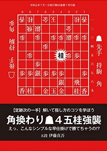 【定跡次の一手】 解いて指し方のコツを学ぼう 角換わり▲4五桂強襲 えっ、こんなシンプルな早仕掛けで勝てちゃうの!? 伊藤真吾 2019.07 |